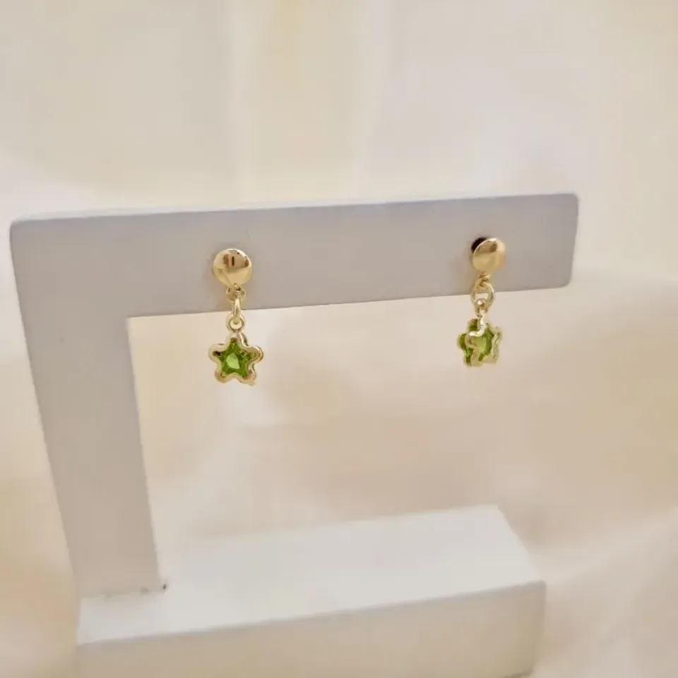 Brinco pingente estrela zirconia verde