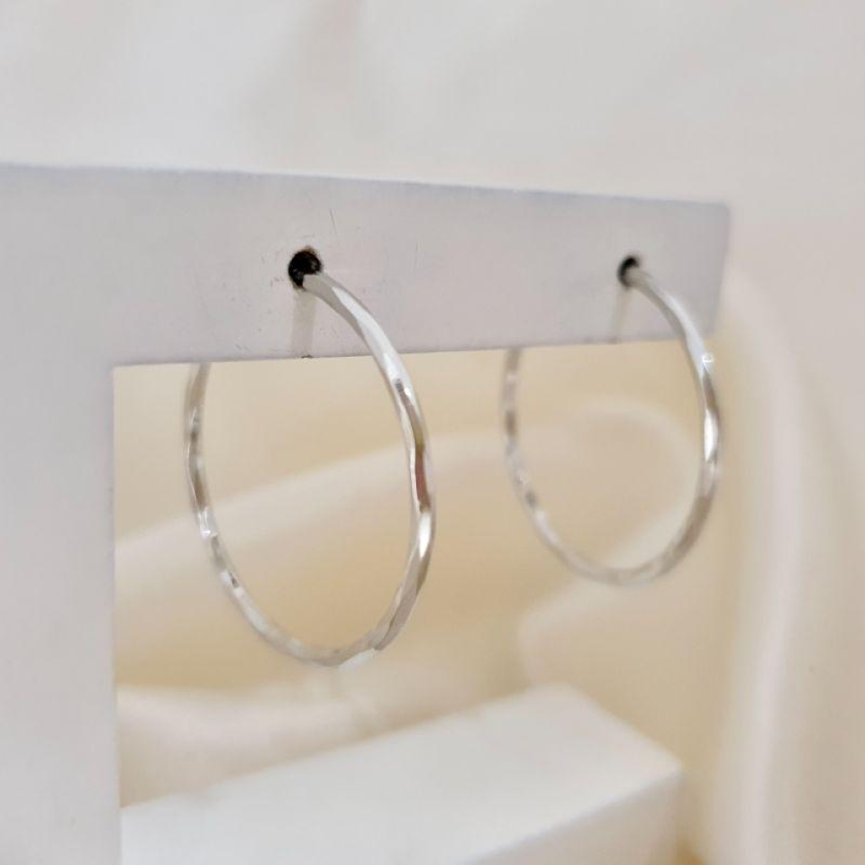Brinco ródio argola diamantada 2,8cm