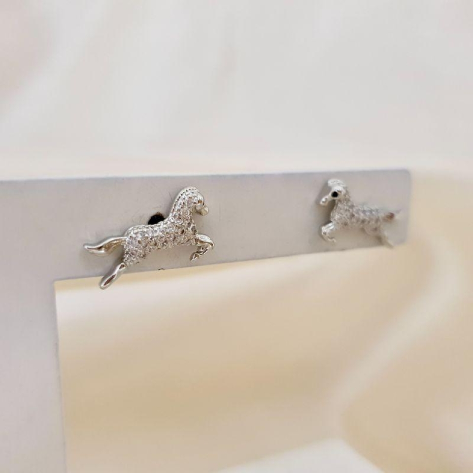 Brinco ródio cavalo cravejado zirconia
