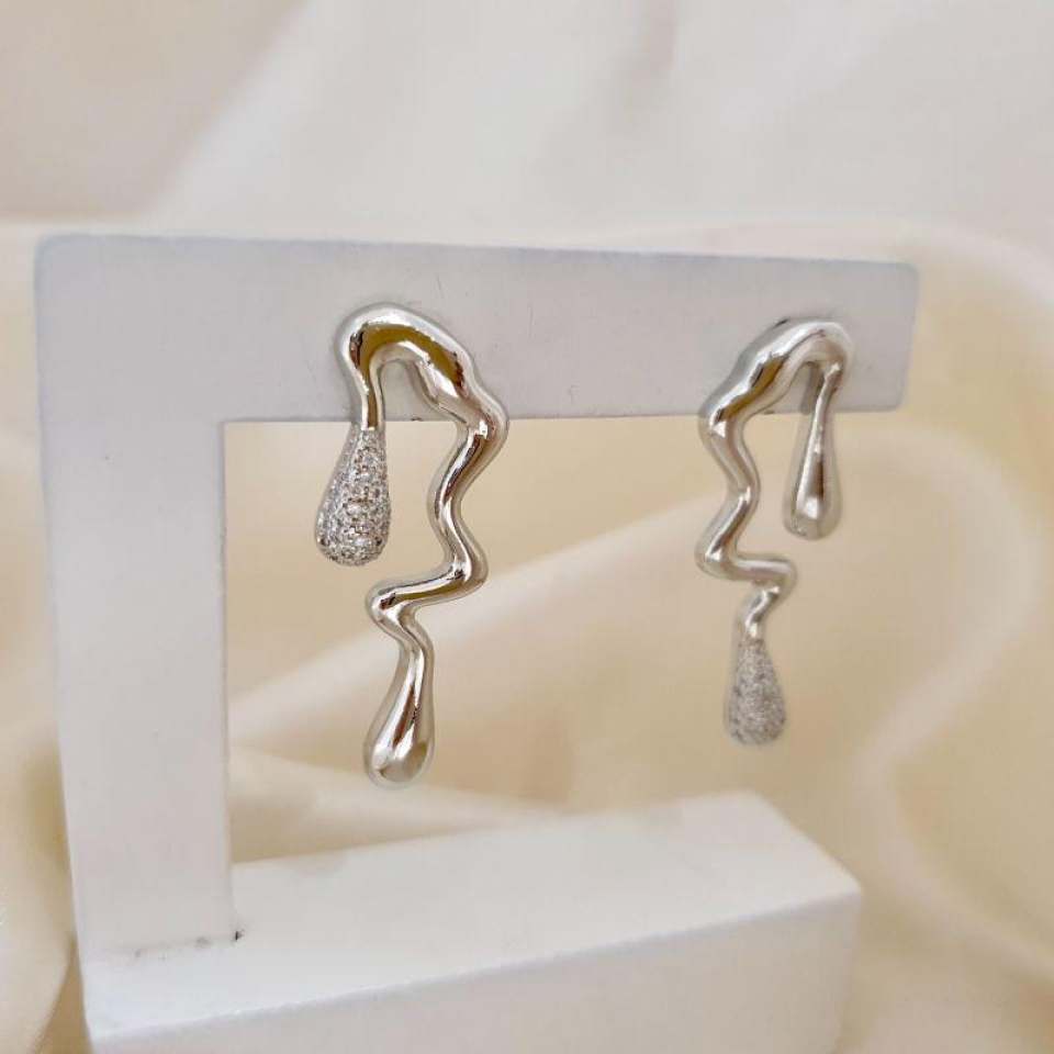 Brinco ródio formato abstrato com zirconia