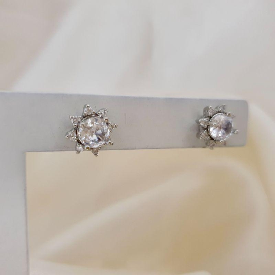 Brinco ródio zirconia e contorno zirconias