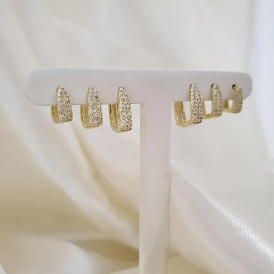 Brinco trio argola click triangular zirconias