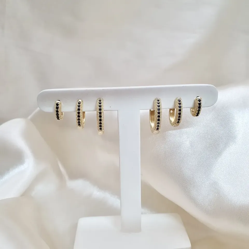 Brinco trio argola click zircônia preta