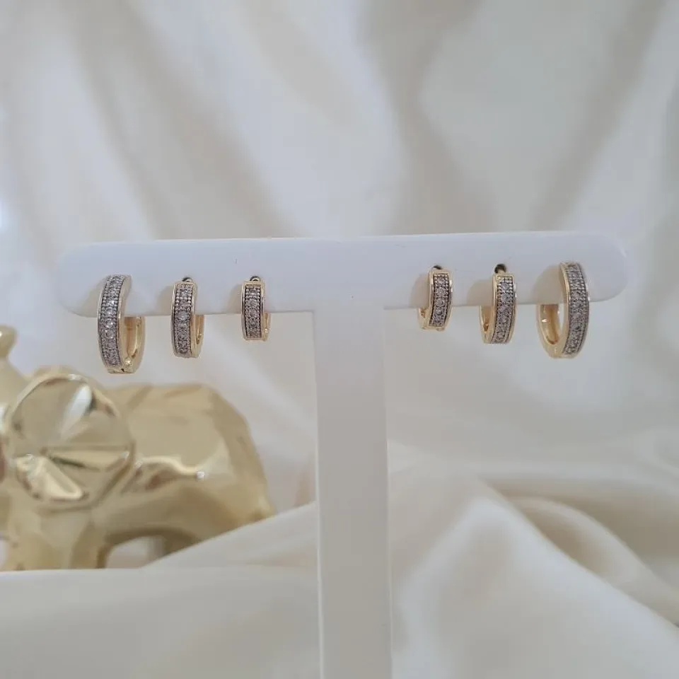 Brinco trio argola cravejada em zircônia