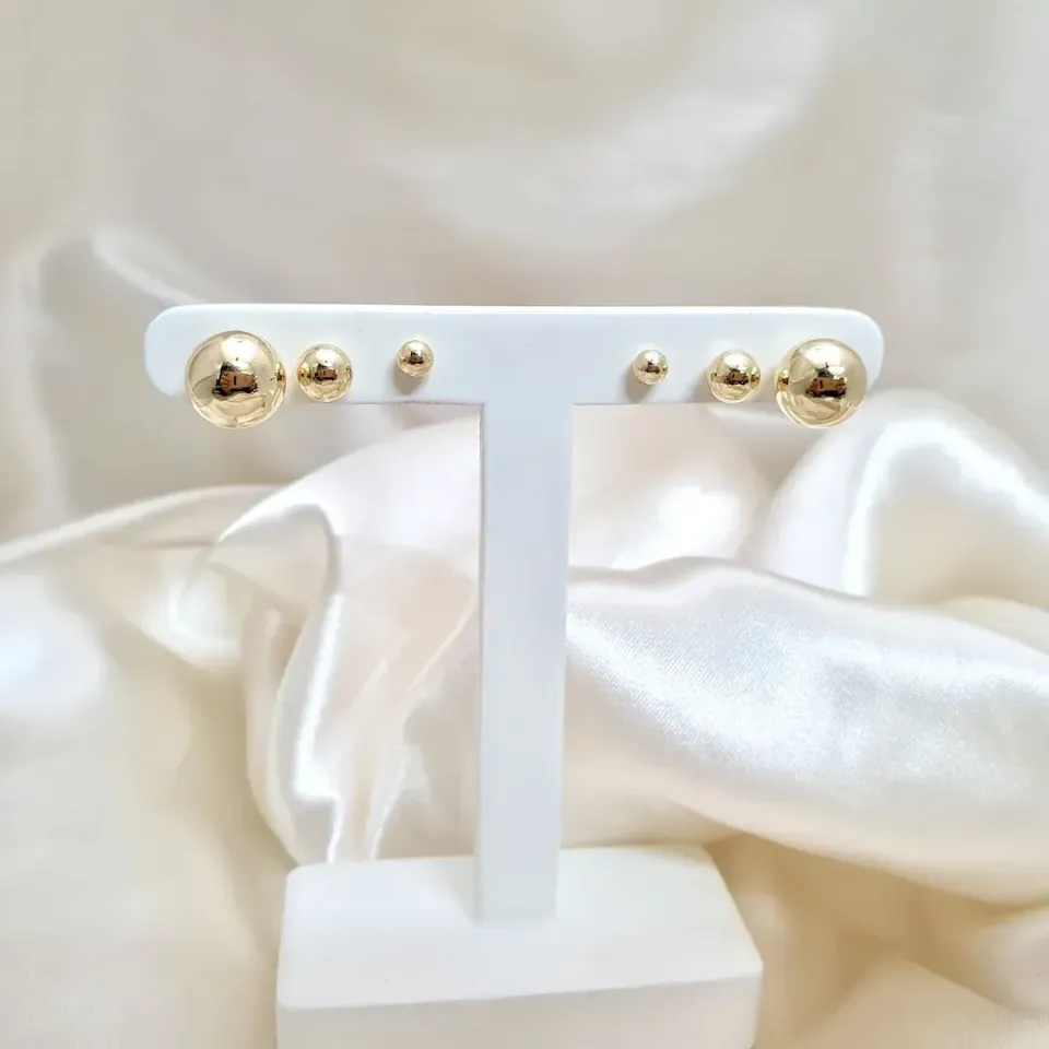 Brinco trio bolas 10mm 6mm e 4mm