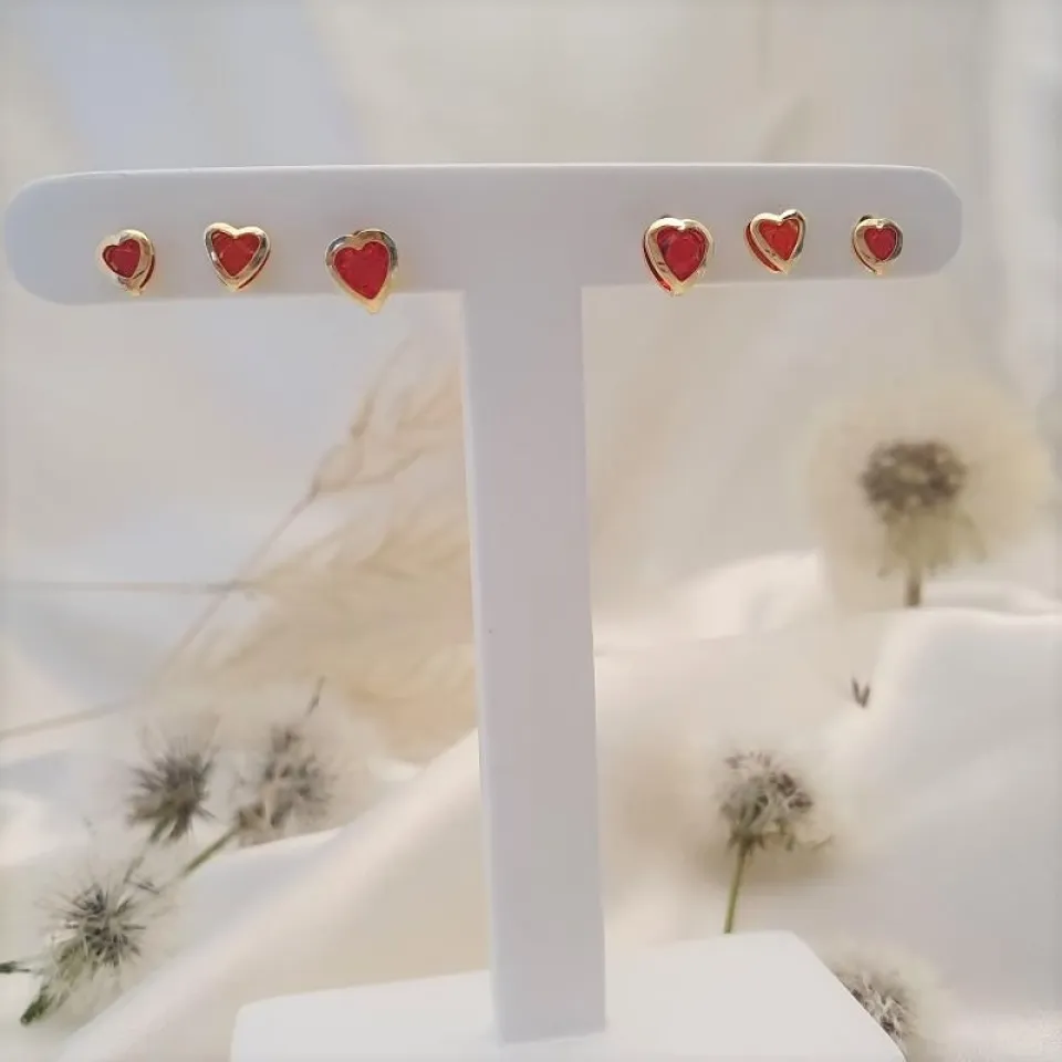 Brinco trio coração cristal vermelho