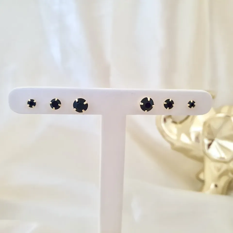 Brinco trio de cristais pretos