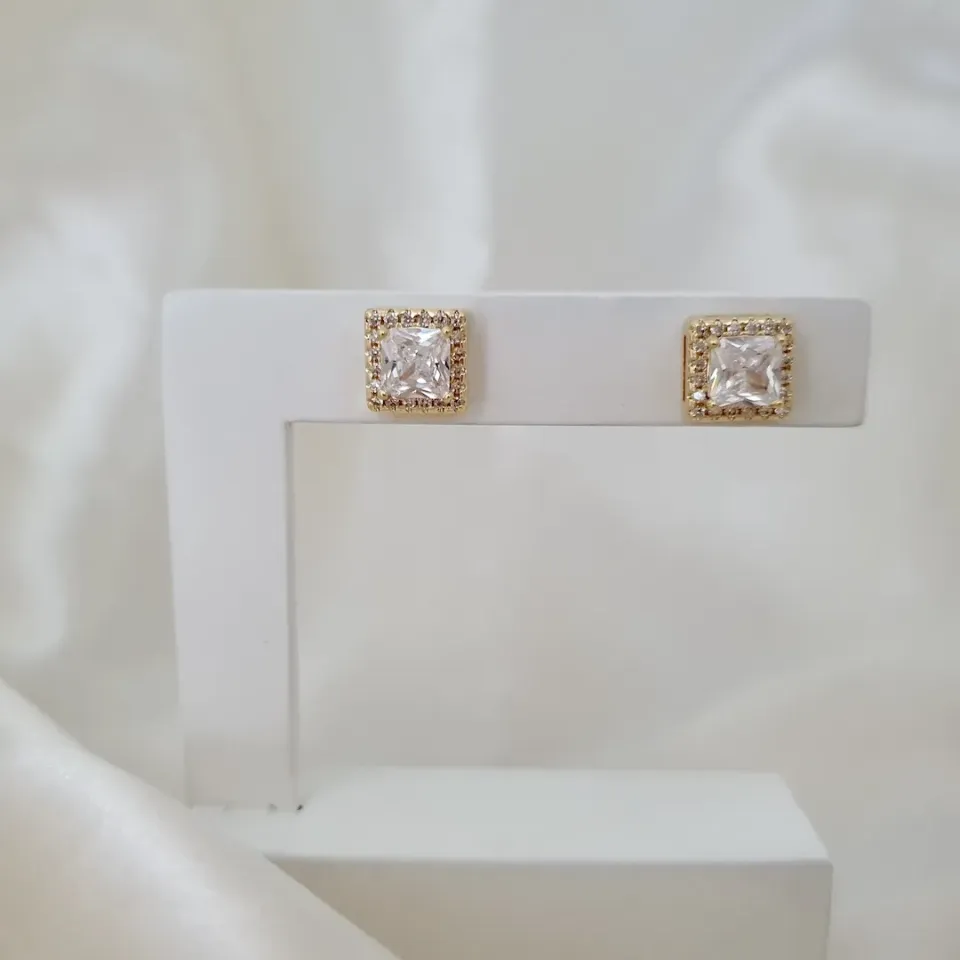 Brinco zircônia quadrada cravejada com microzircônias