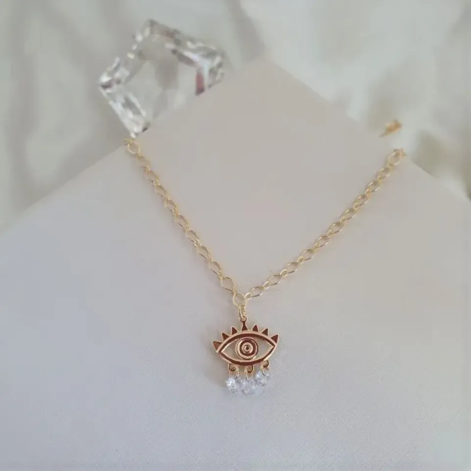 Choker de olho grego com três zircônias