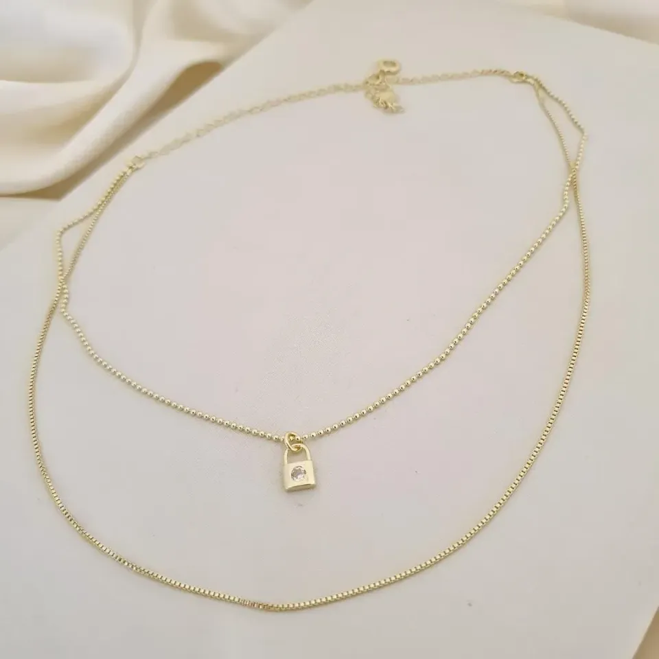 Choker duplo pingente cadeado