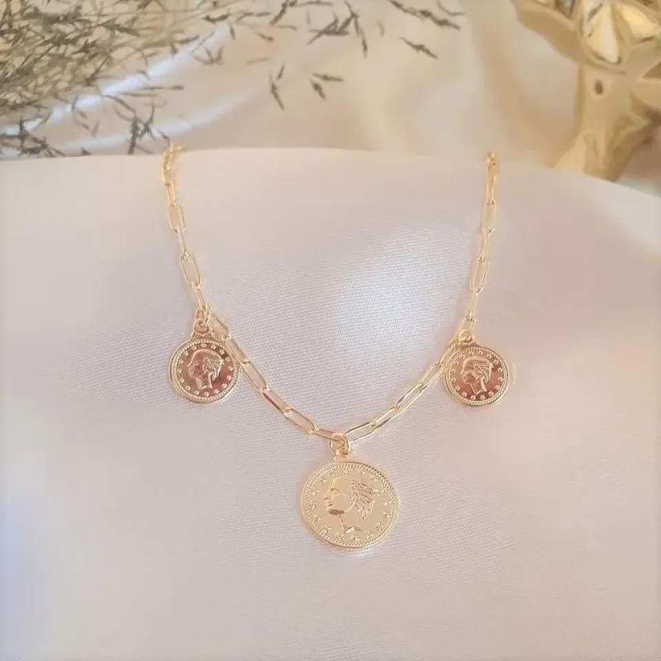 Choker medalha antiga Lira Italiana