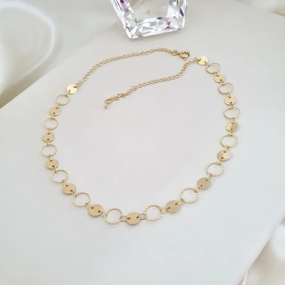 Colar choker chapa redonda e círculo