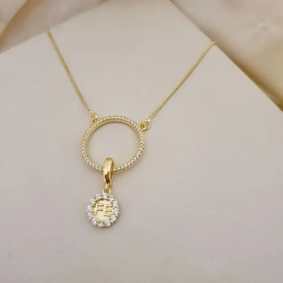 Colar circulo zirconia com pingente fé