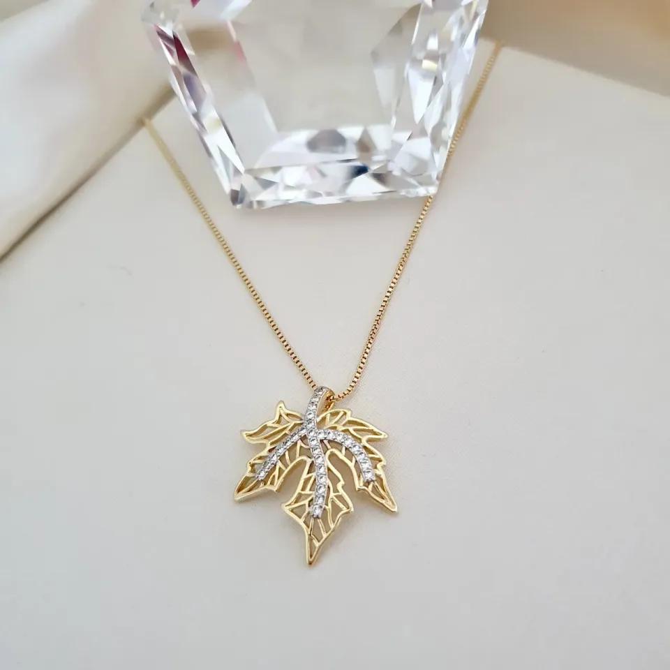 Colar com folha cravejada em zircônia