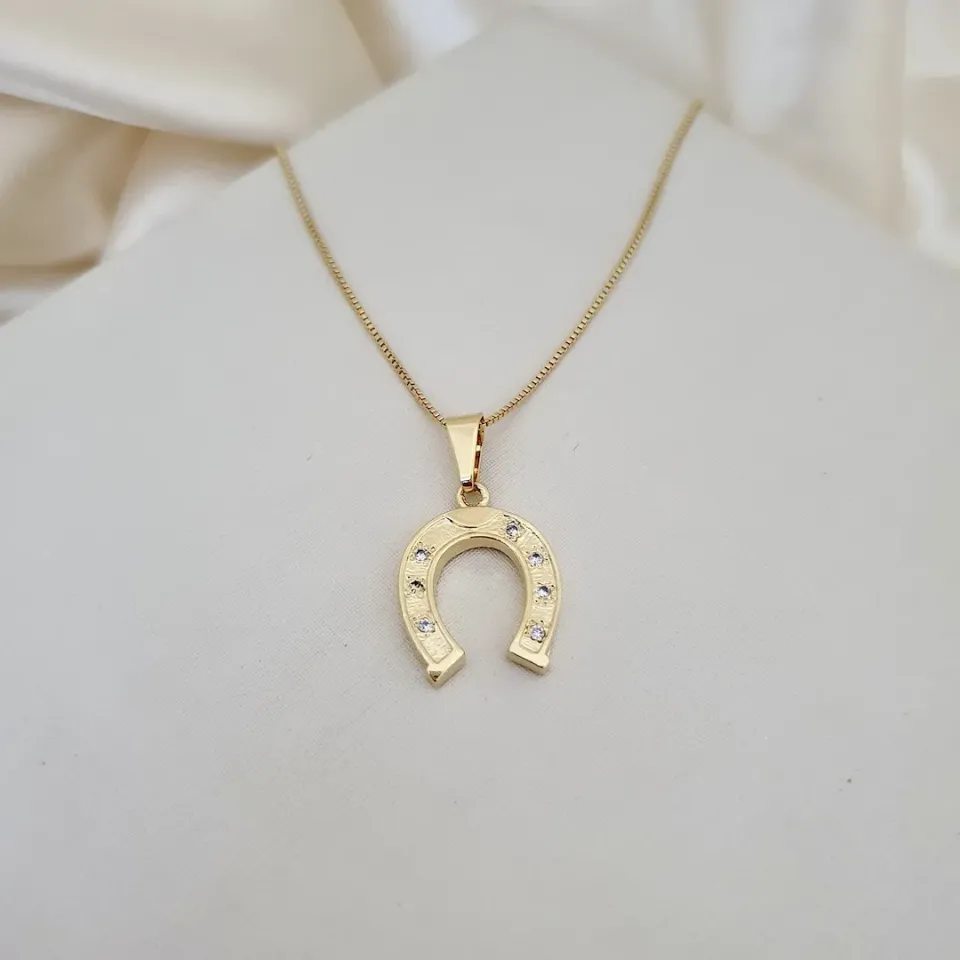 Colar com pingente de ferradura com zircônias