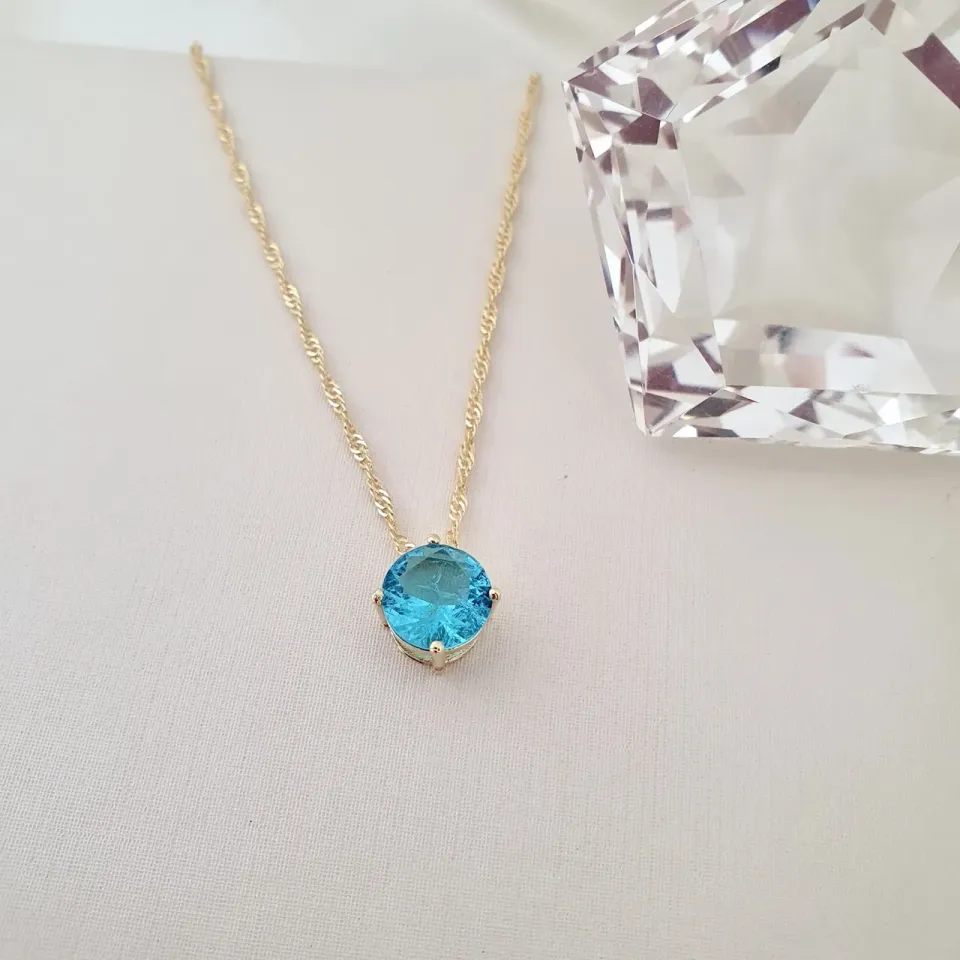 Colar com pingente de zircônia azul fusion