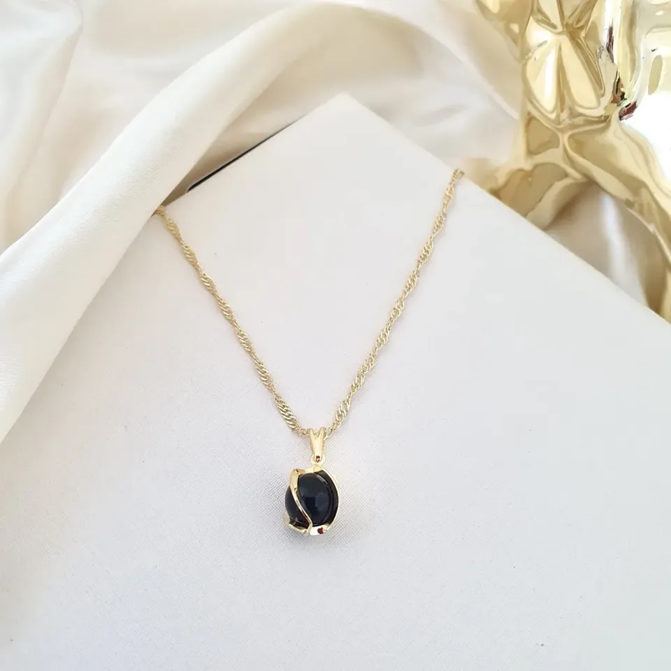 Colar com pingente esfera preta com detalhe