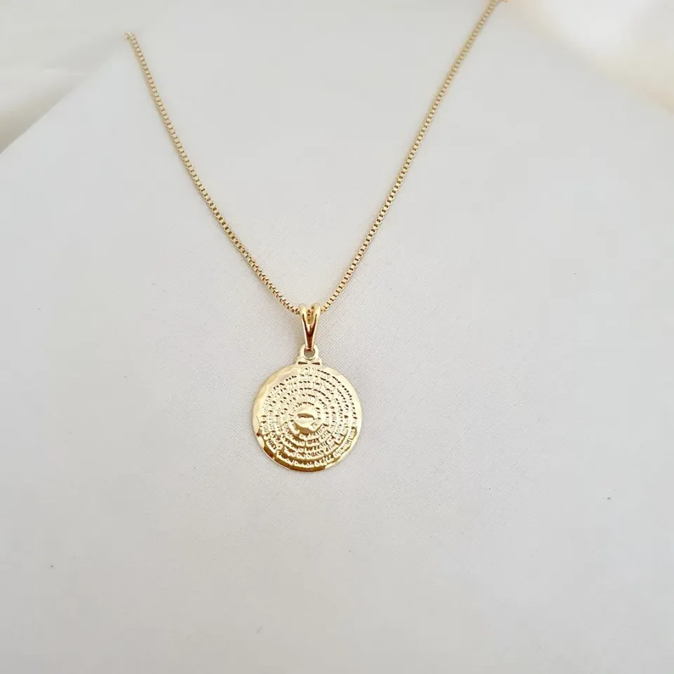 Colar com pingente medalha oração Pai Nosso