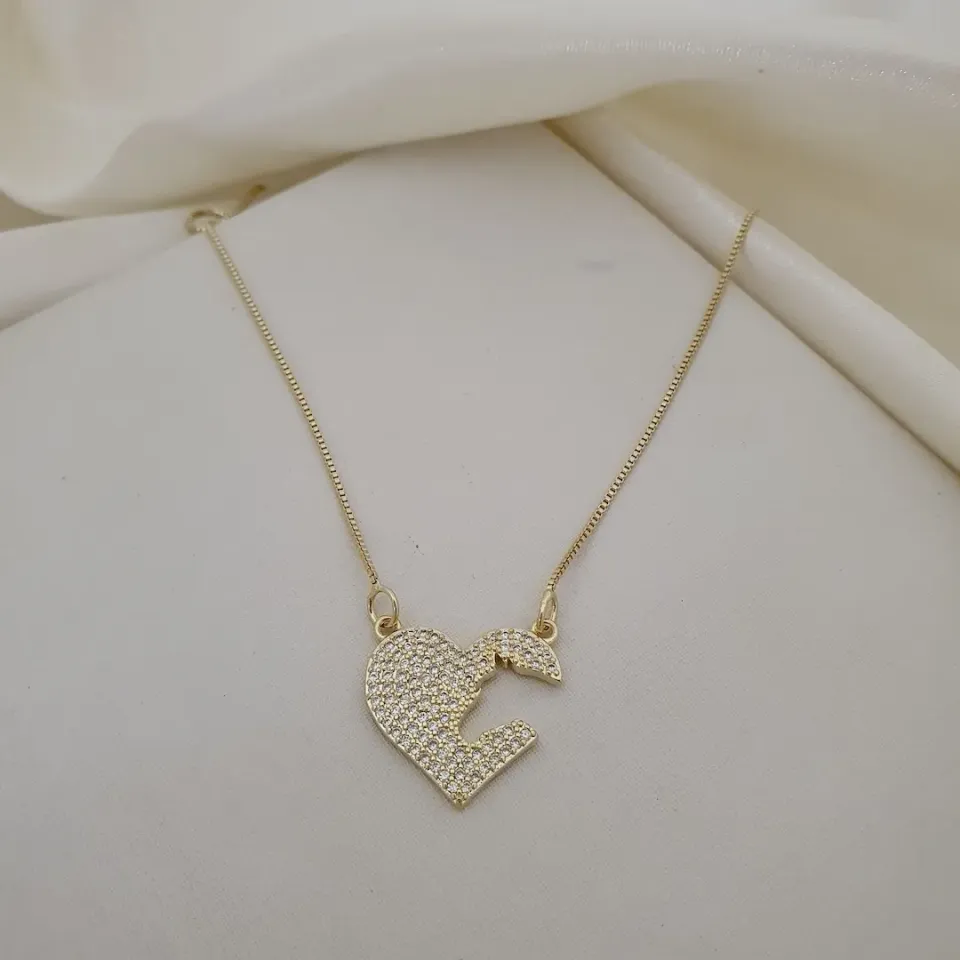 Colar coração cravejado zircônia cavalo