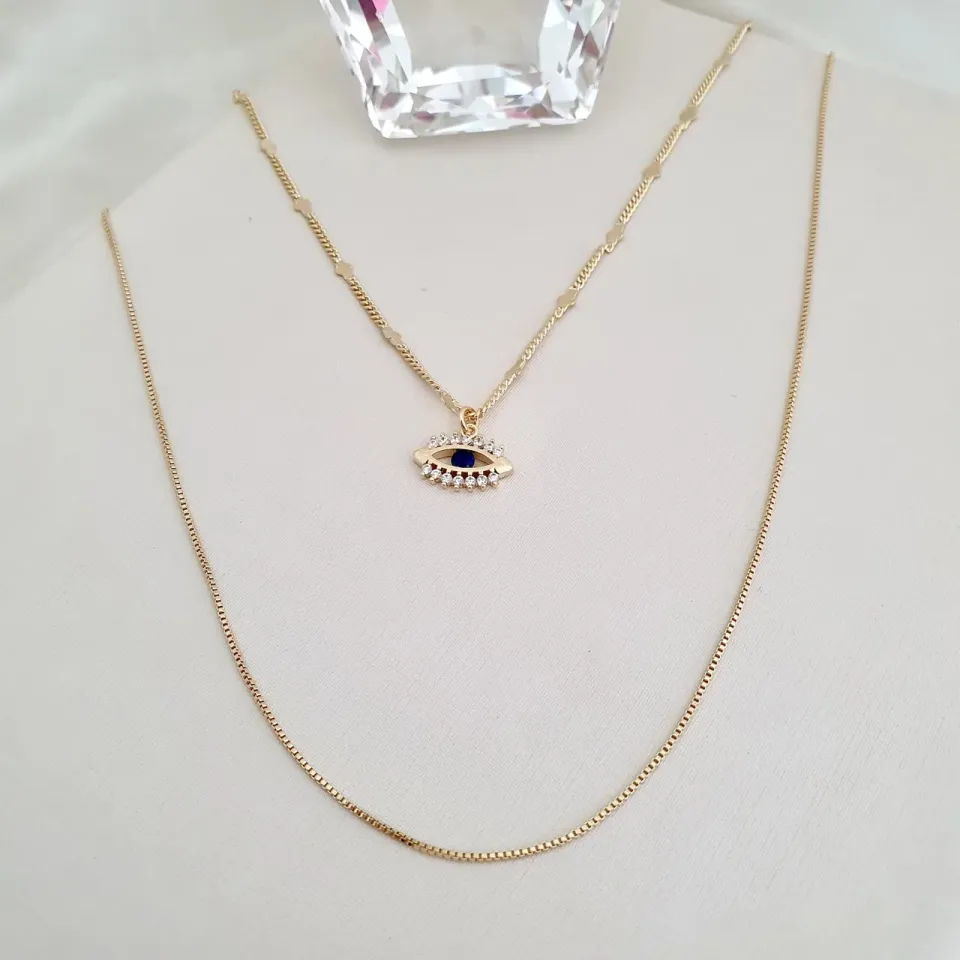 Colar duplo pingente olho grego