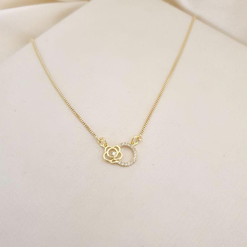 Colar flor e circulo zirconias entrelaçados
