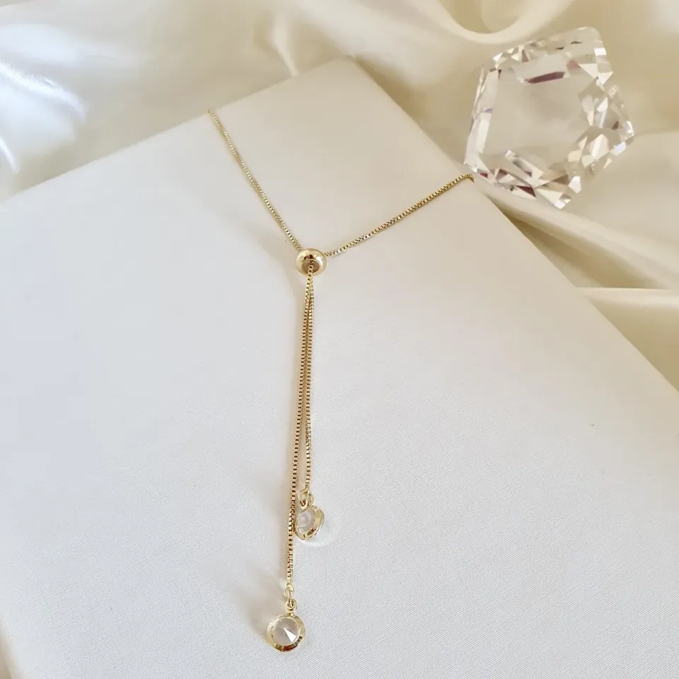 Colar gravatinha 2 pontos de luz cristal