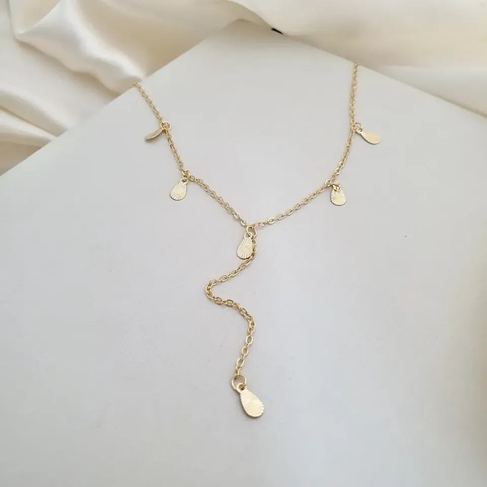 Colar gravatinha placas gotas diamantadas