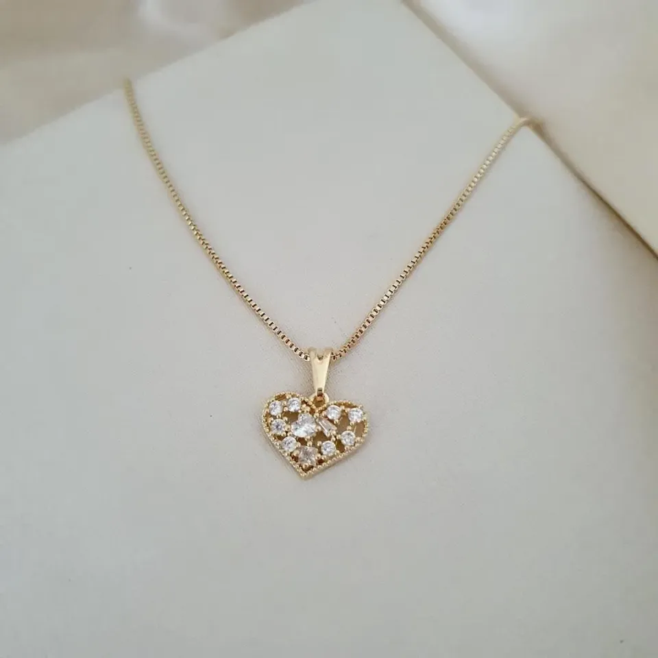 Colar pignente coraçao com zirconias