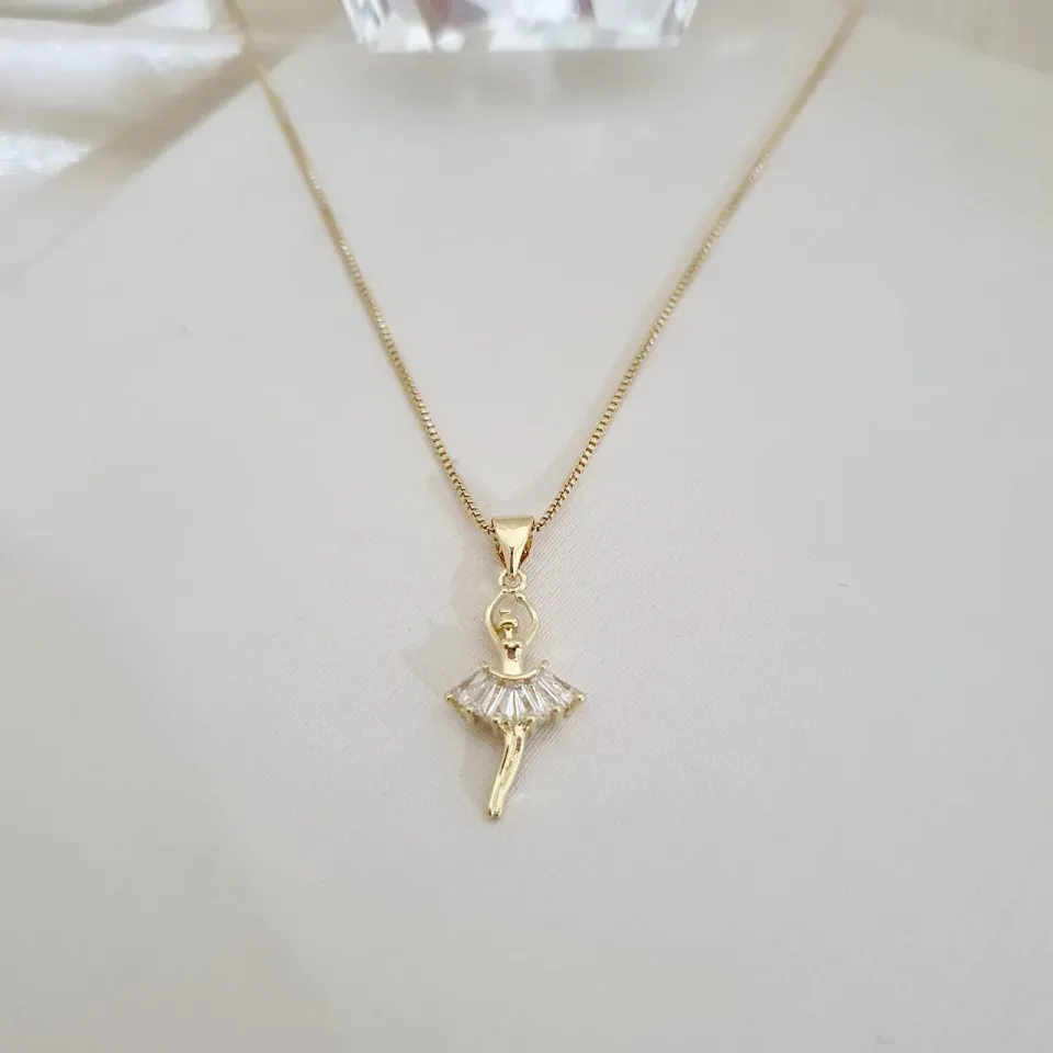 Colar pingente bailarina com saia de zircônias