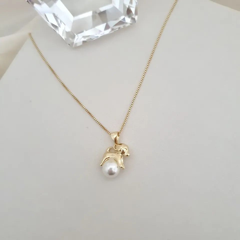 Colar pingente cachorro e pérola