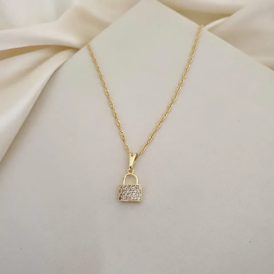 Colar pingente cadeado cravejado zirconias