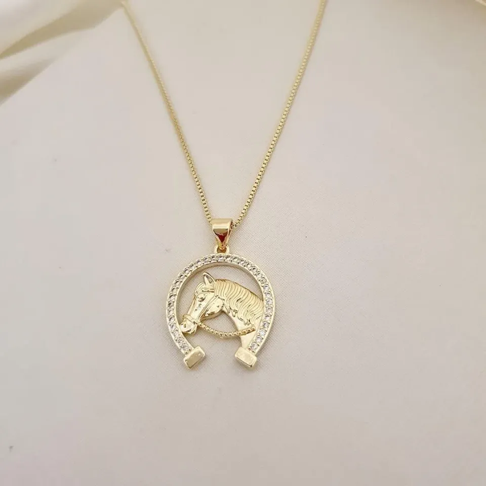 Colar pingente cavalo ferradura zirconias
