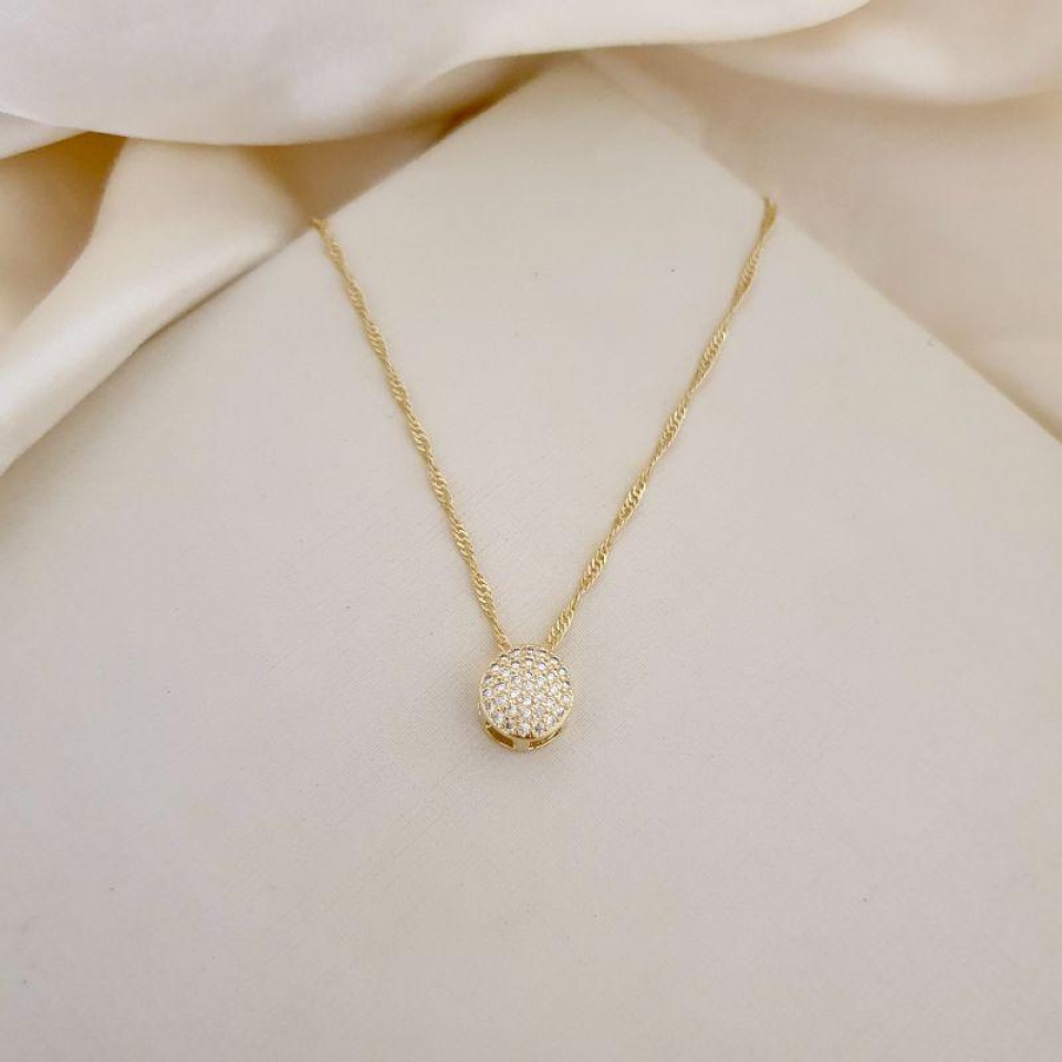 Colar pingente círculo cravejado zirconia