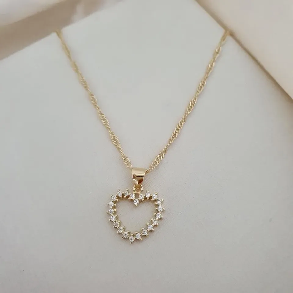 Colar pingente coraçao cravejado zirconia