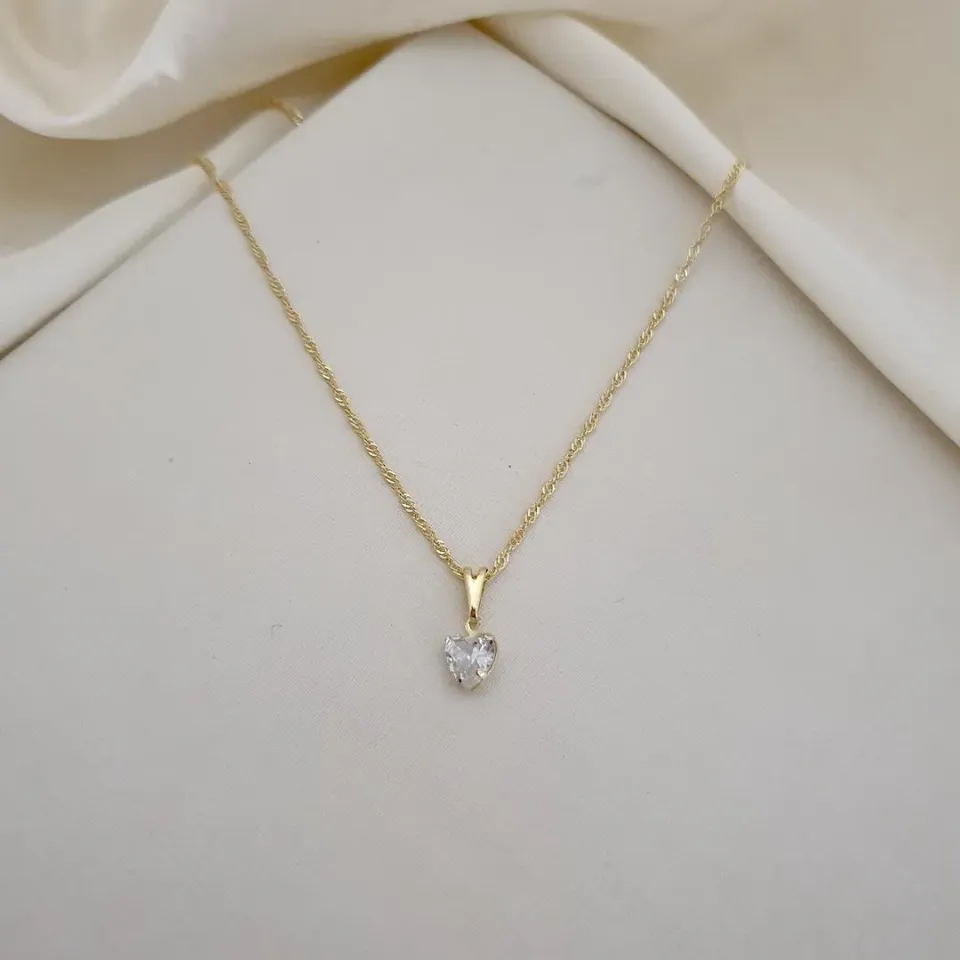 Colar pingente coração zircônia