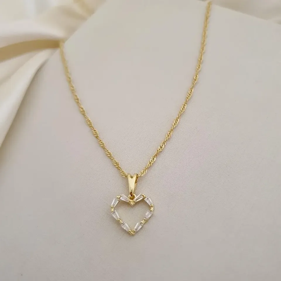 Colar pingente coraçao zirconias baguete