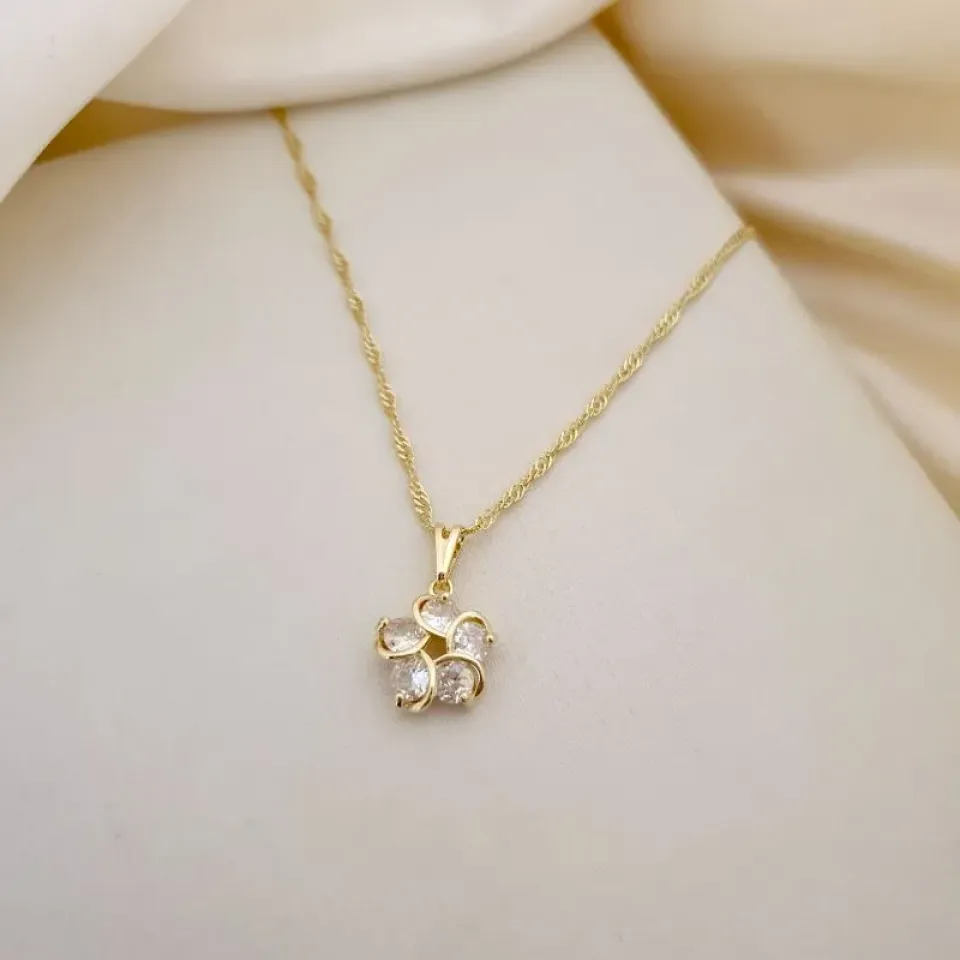 Colar pingente flor zirconias