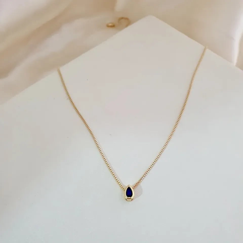 Colar pingente gota zircônia azul marinho