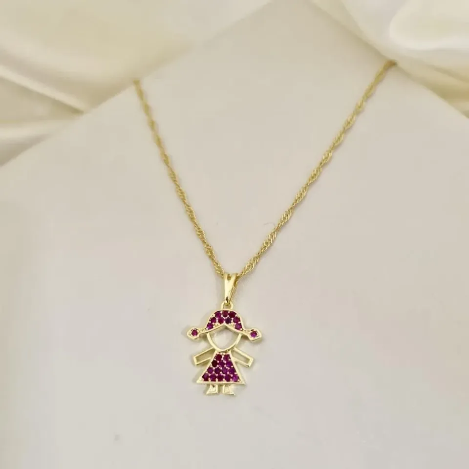 Colar pingente menina zirconia rosa