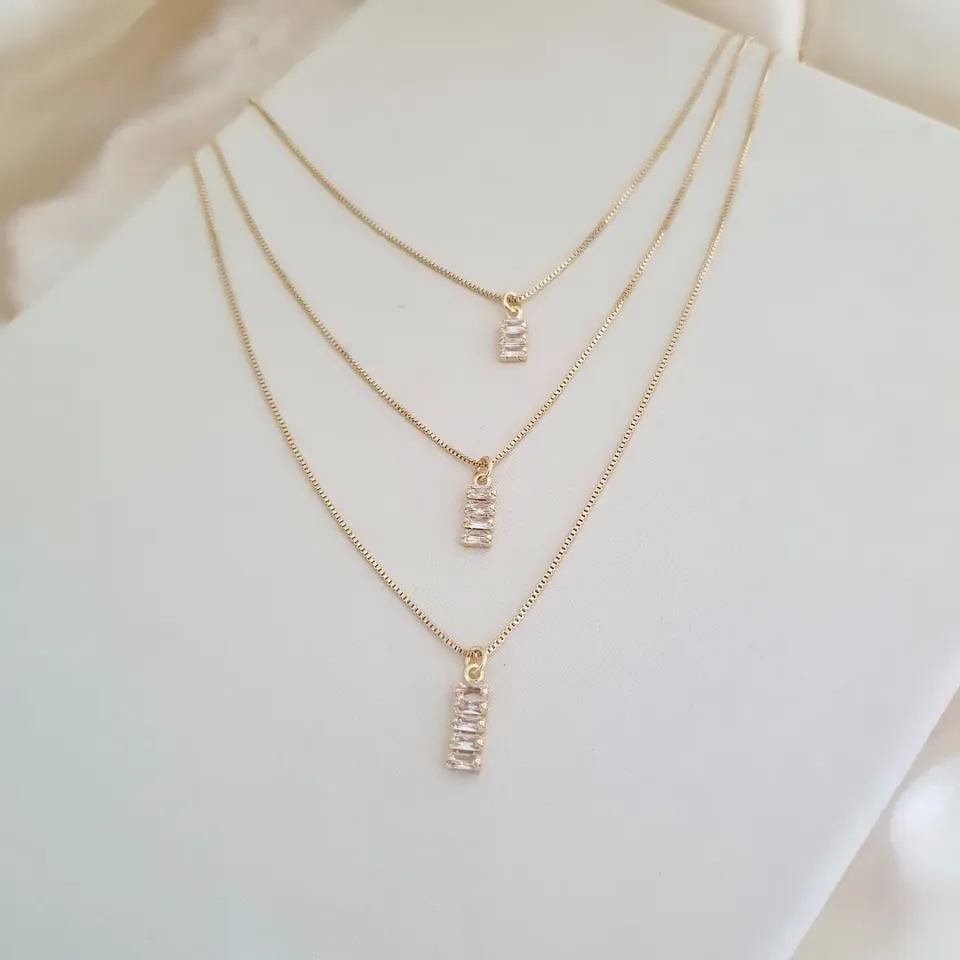 Colar triplo pingentes zircônias