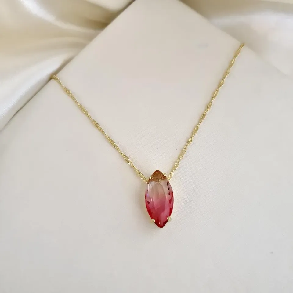 Colar zirconia oval rainbow rosa
