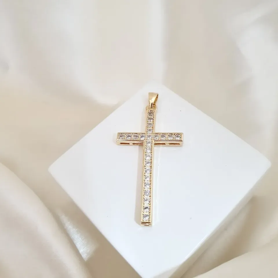 Pingente cruz cravejada zircônia