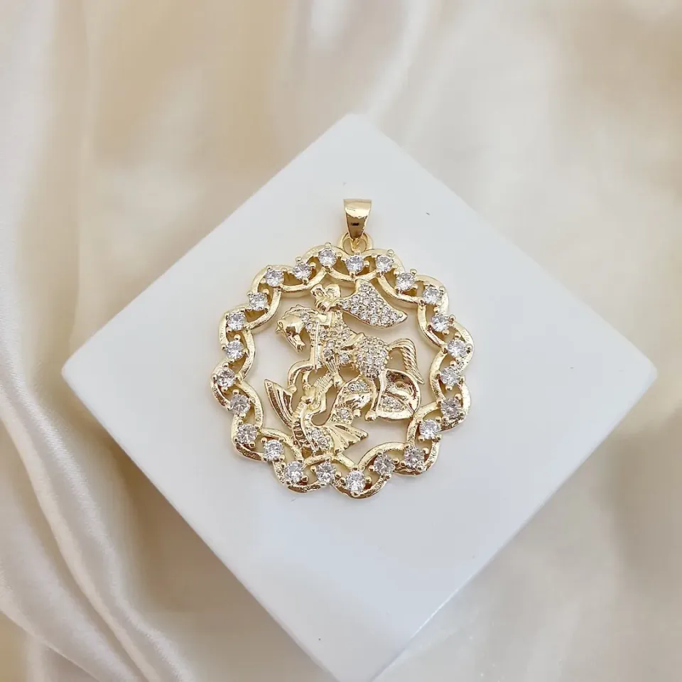 Pingente mandala São Jorge cravejado zircônia