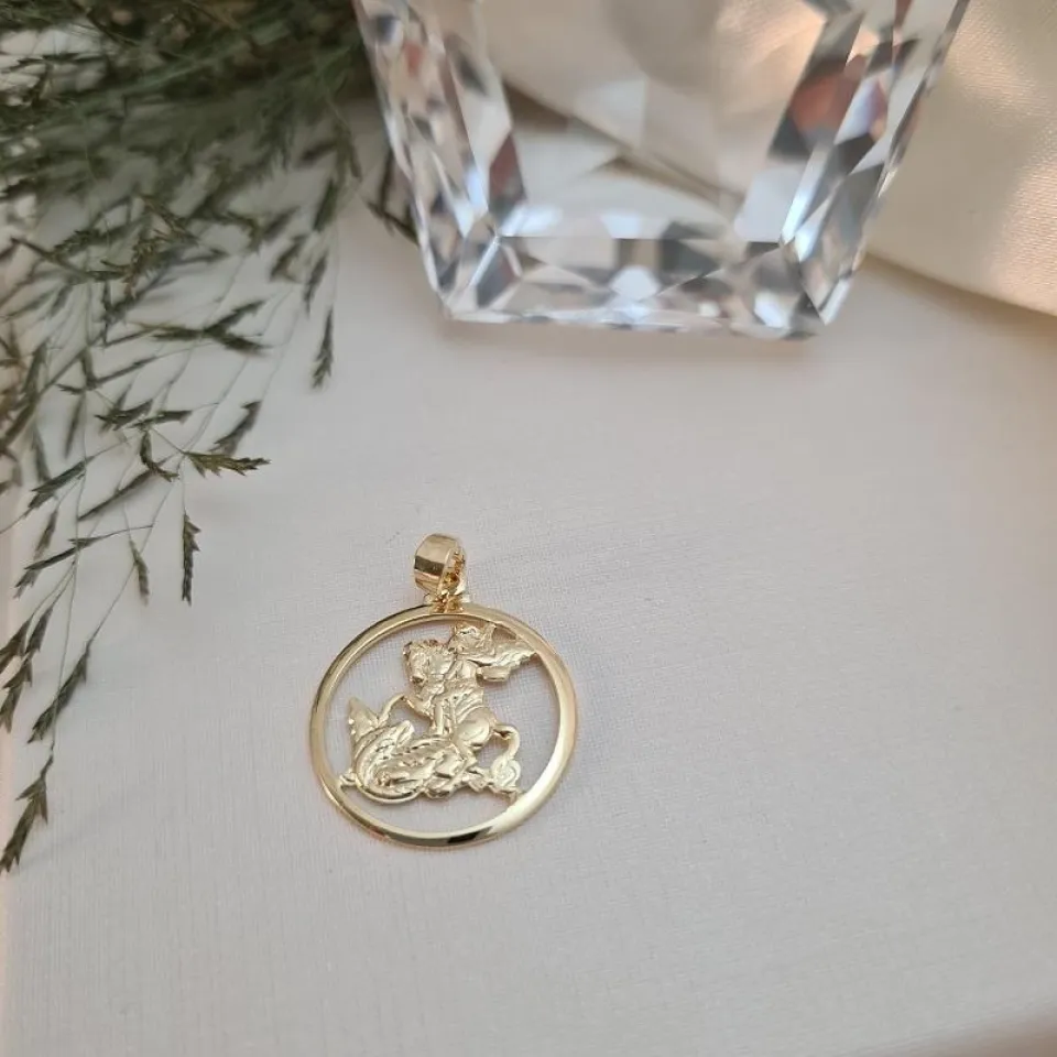 Pingente medalha de São Jorge vazada