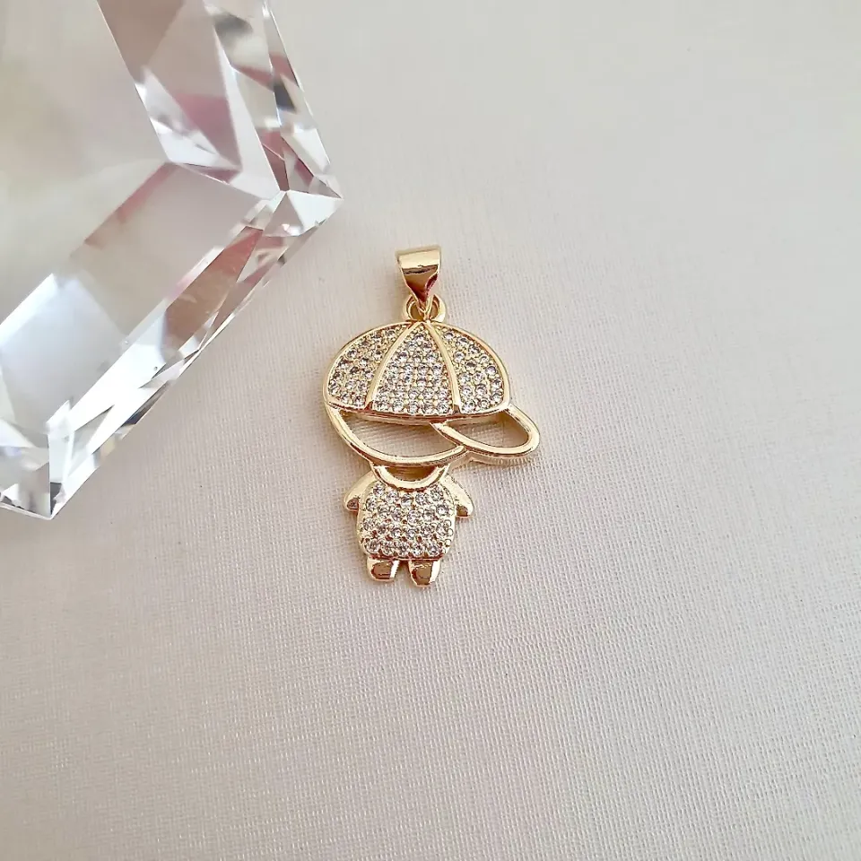 Pingente menino boné cravejado em zircônia