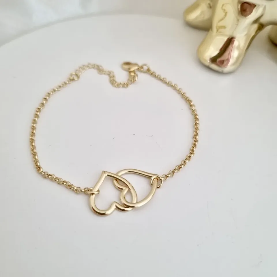 Pulseira 2 corações entrelaçados
