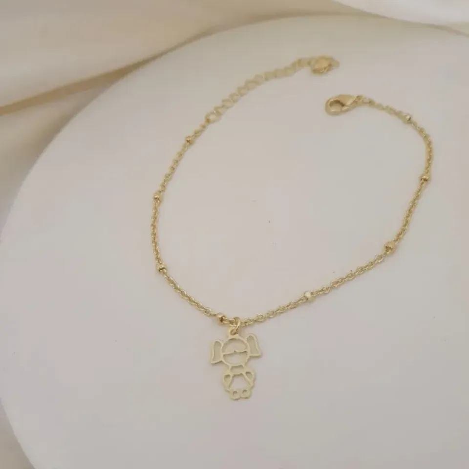 Pulseira bolinhas com pingente menina (filha)