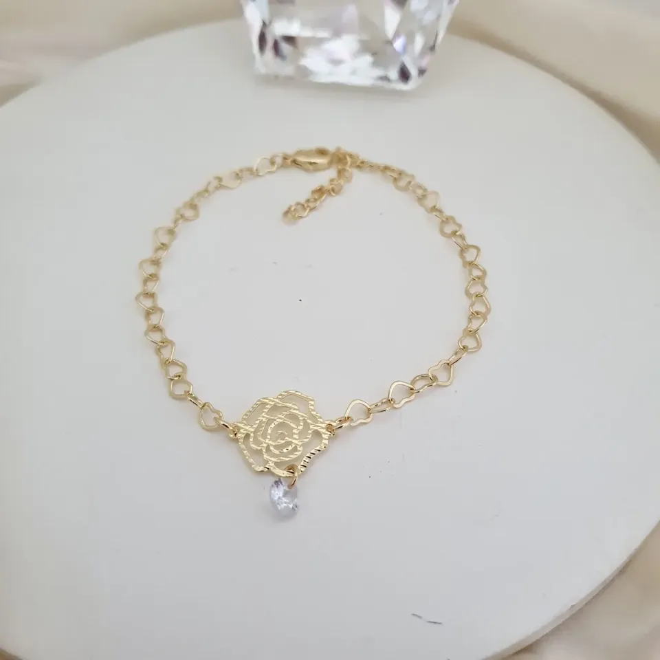 Pulseira com pingente de flor e zircônia