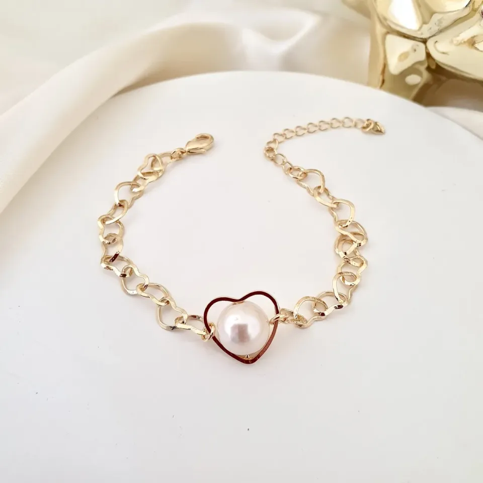 Pulseira coração com pérola