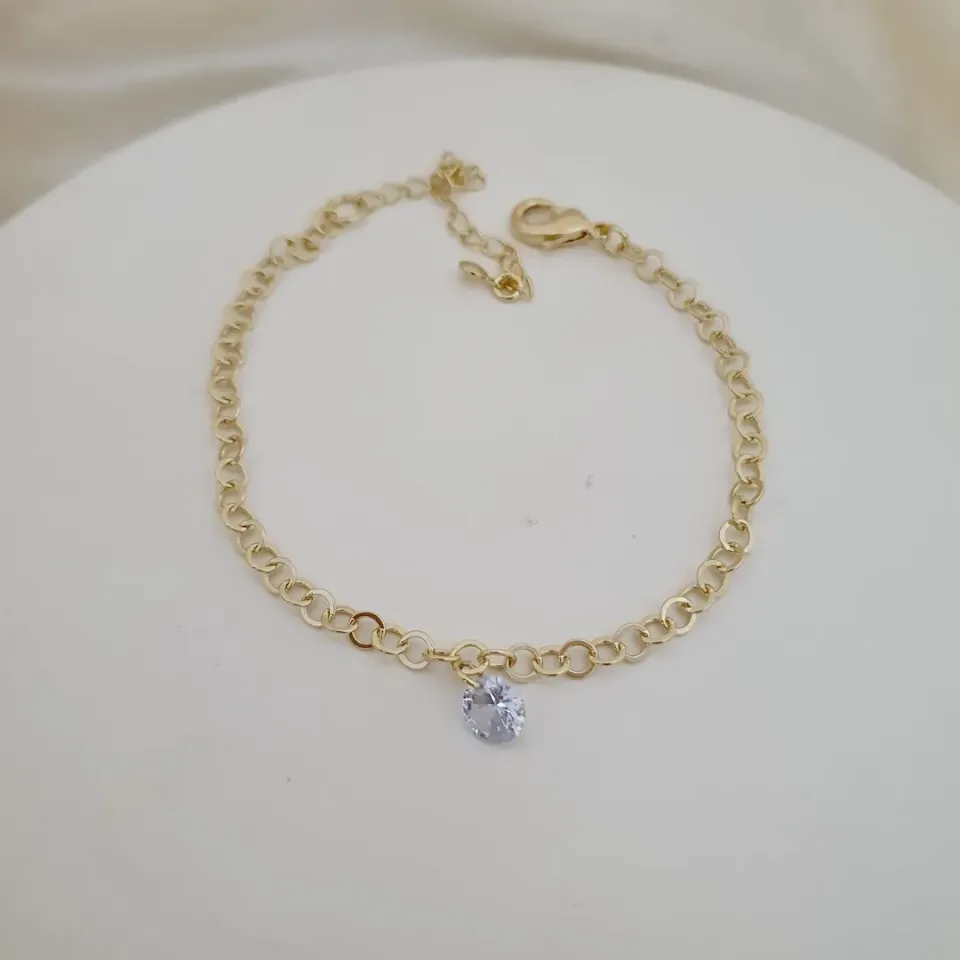 Pulseira elo redondo e pingente zircônia